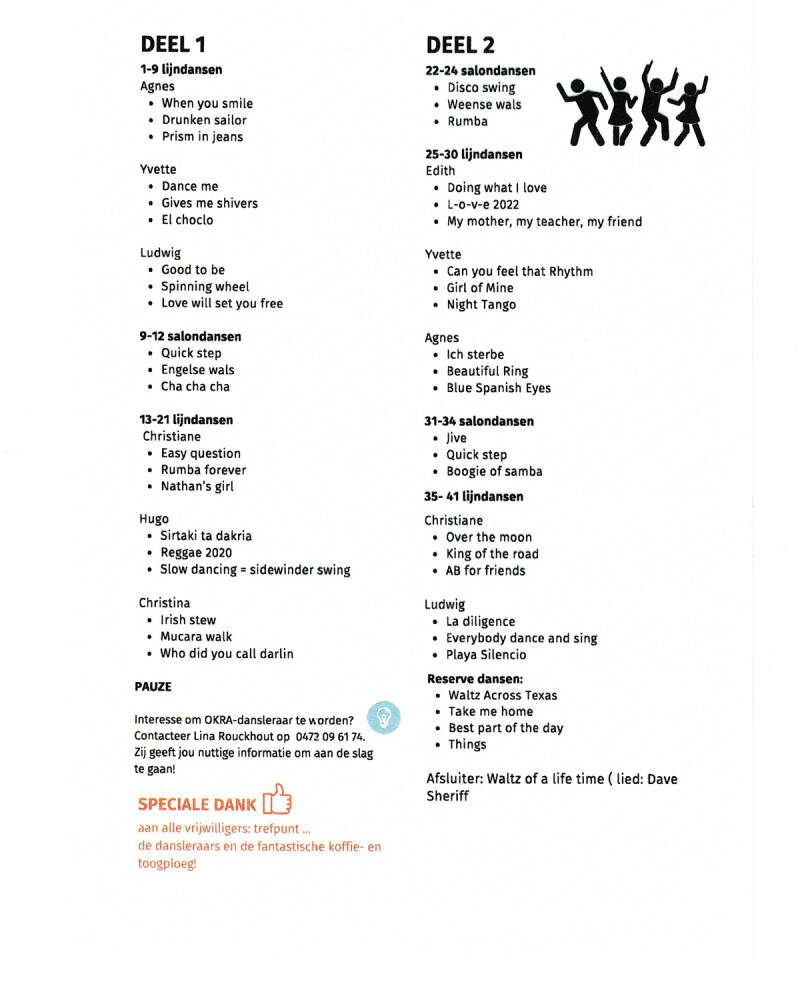 Nieuw dit jaar (2020) -coronatijd- is dat we nu verder dansen in juli en augustus.